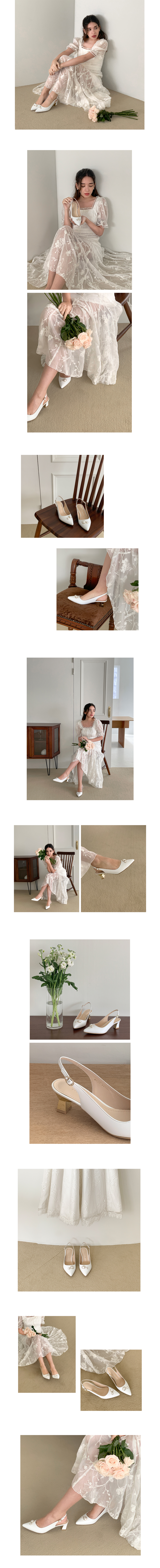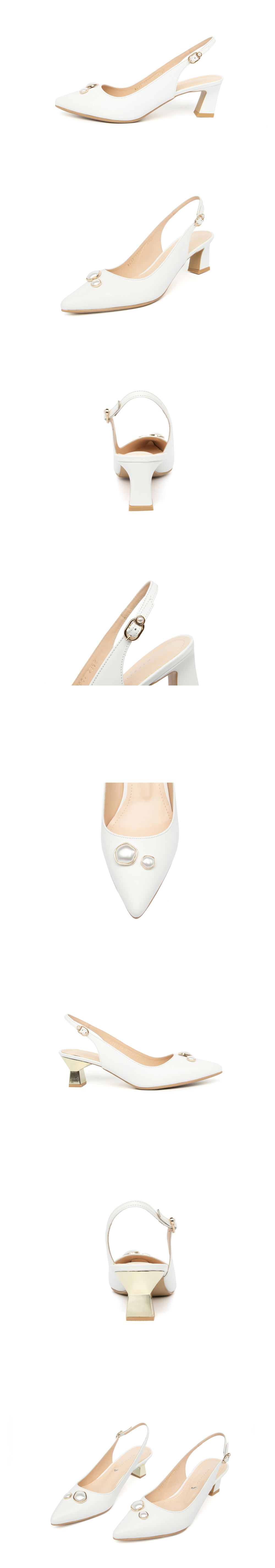 유니크한 진주 장식으로 포인트를 준 슬링백 디자인.